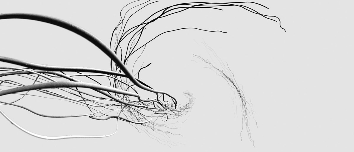 Eine abstrakte Nadel legt sich auf die Schallplatte.Kamerafahrt durch eine einzelne Vinylrille.Sphärische Bewegung in einem Strang aus Staubfäden.Kamerafahrt durch eine einzelne Vinylrille.Wandel der Schallplatte.Räumliche bunte Welten.